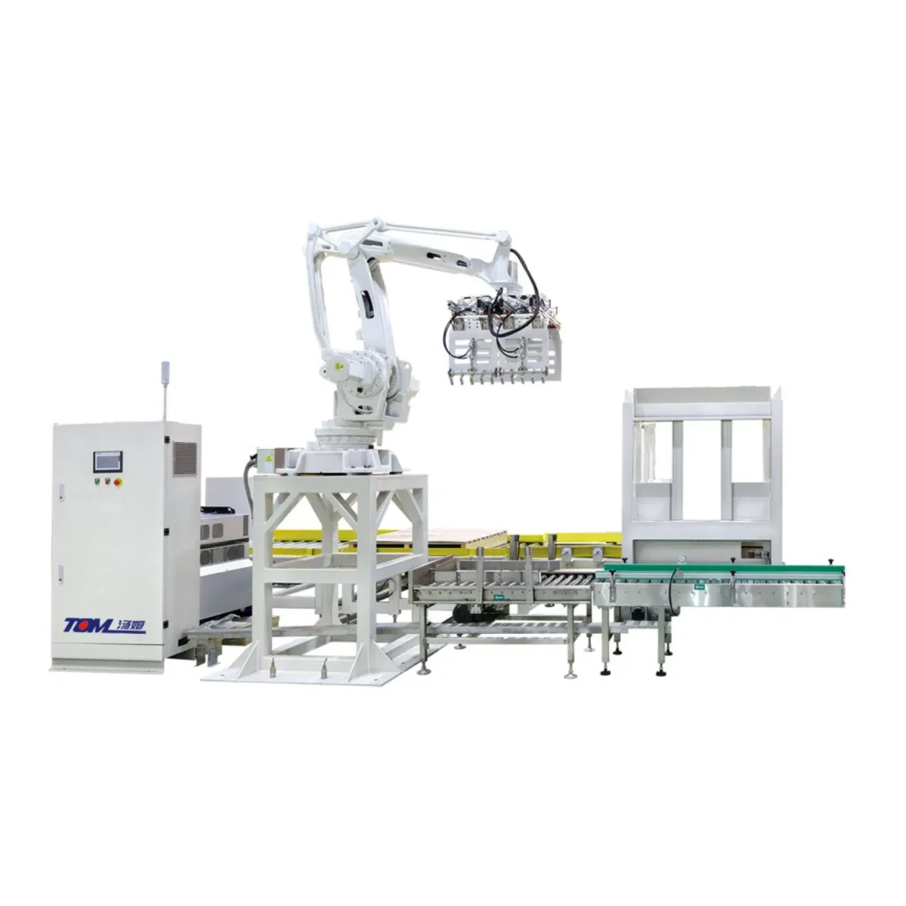 Automatic bucket feeding machine, tracking filling and capping integrated machine, Crooked cap inspection and removal device, online bottle weight inspection and removal device, aluminum foil sealing machine, inkjet printer, aluminum foil leak detection machine, stacking machine, robot palletizer. Intelligent labeling machine, servo clamping steering machine, box erector, automatic bottom plate machine, packing machine, online box inspection and weight removal machine, sealing machine,pallet dispenser, robot palletizer