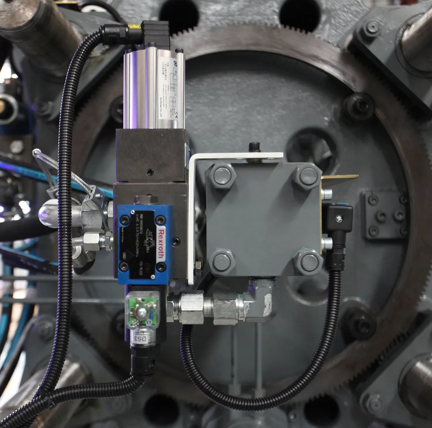 • One piece type injection unit support device, helps injection movement to be more precise.