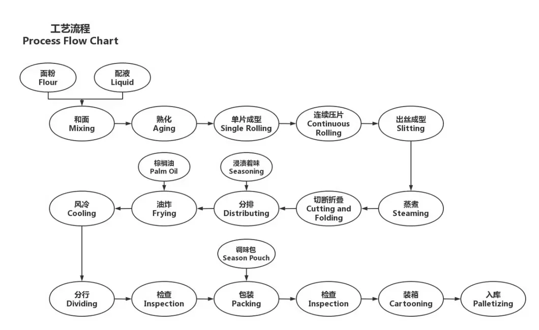 This is the whole process of instant noodles production. The flour processing into instant noodles requires more than ten units to complete continuously, with a high degree of automation.